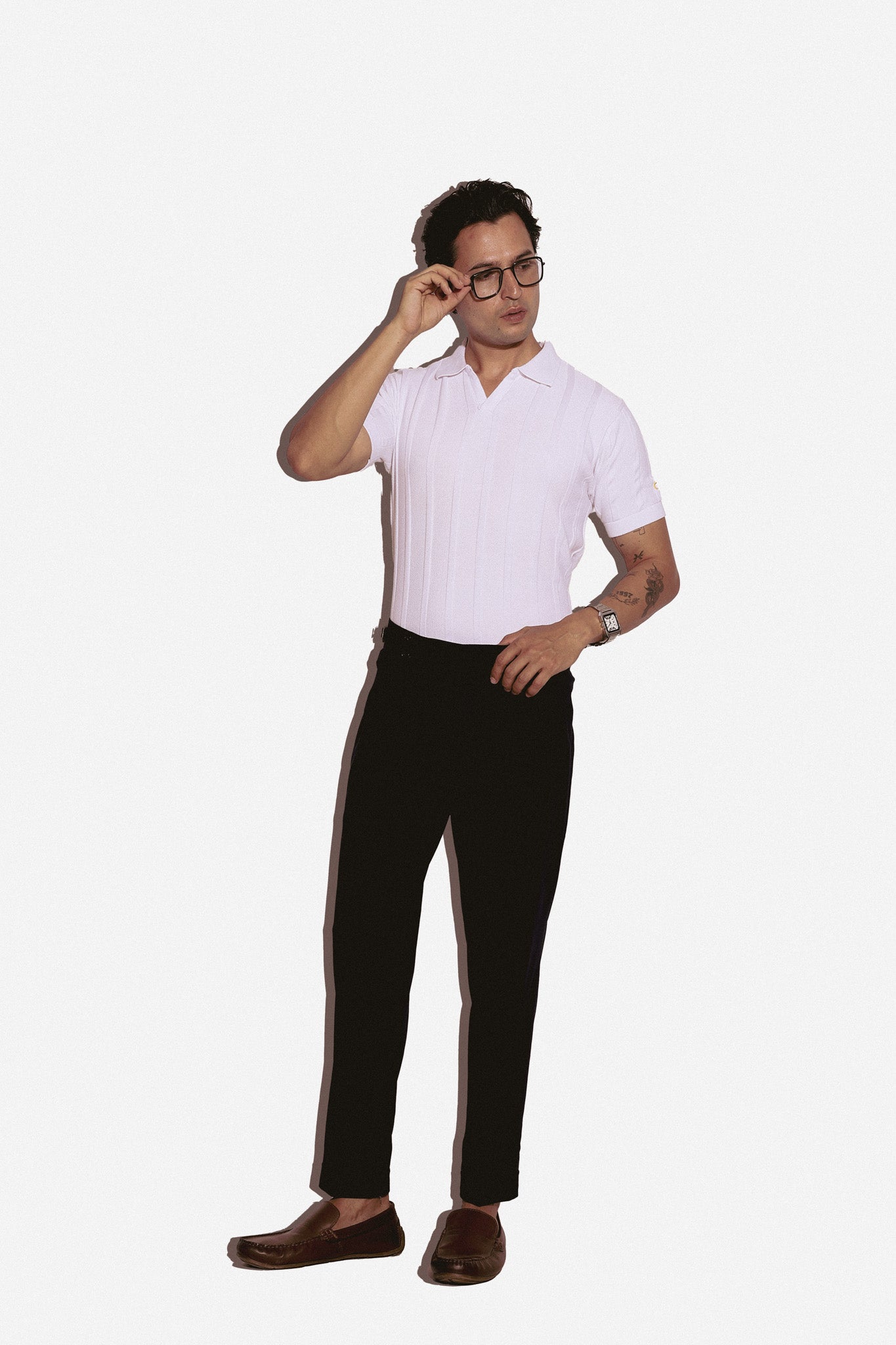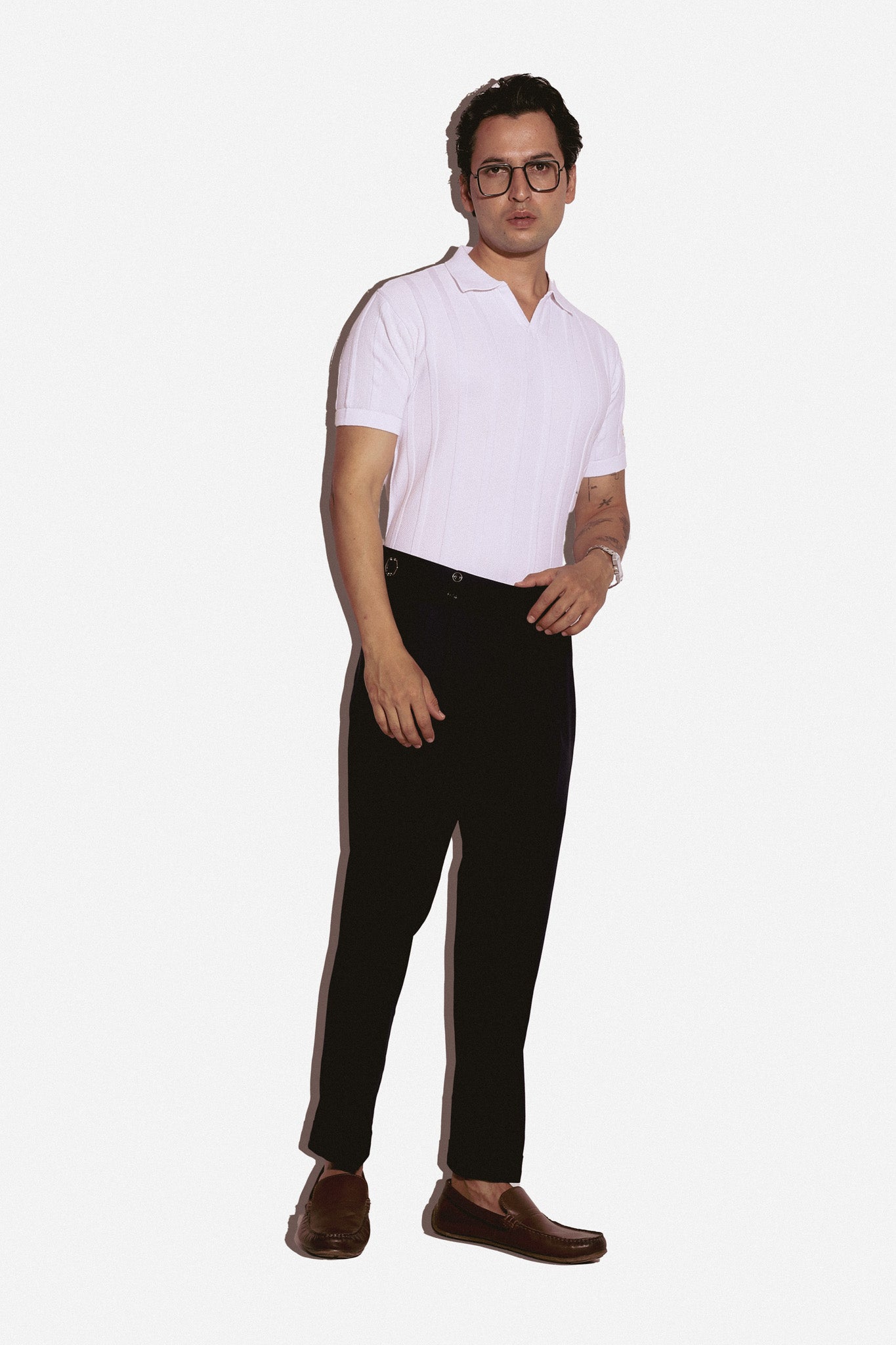 Embrace the epitome of understated luxury with our Half-Sleeved Striped Knit T-Shirt in pure white. Crafted from ultra-fine, breathable cotton, this piece offers a harmonious blend of comfort and sophistication. The meticulously knitted tonal stripes add subtle texture, elevating the classic silhouette and embodying the refined aesthetic synonymous with the "Old Money" style.