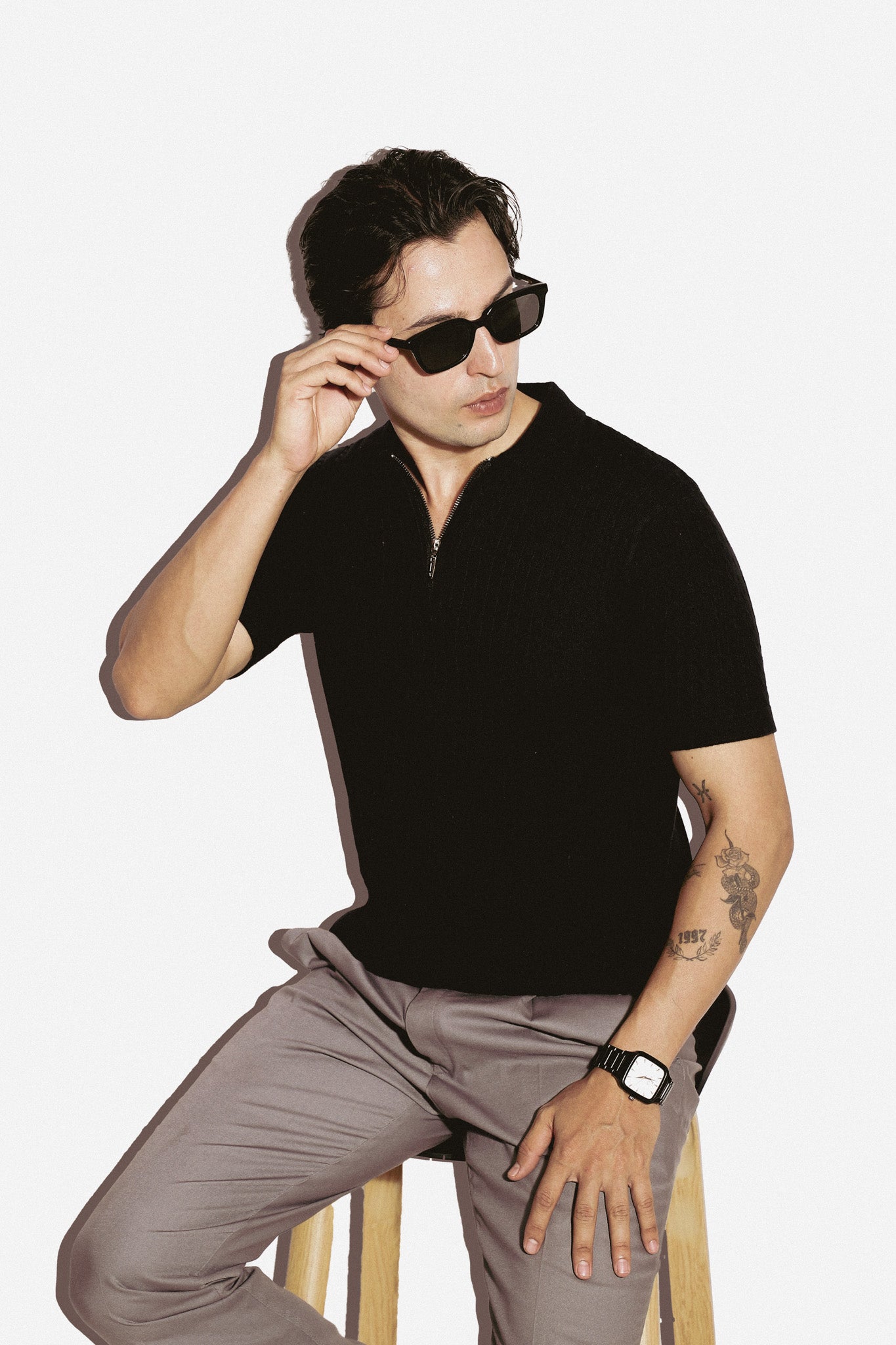 Immerse yourself in understated luxury with our Half-Sleeved Cable Knit T-Shirt in classic black. Crafted from premium, breathable cotton, this piece offers a harmonious blend of comfort and sophistication. The intricate cable knit pattern adds a touch of texture, elevating the timeless silhouette.